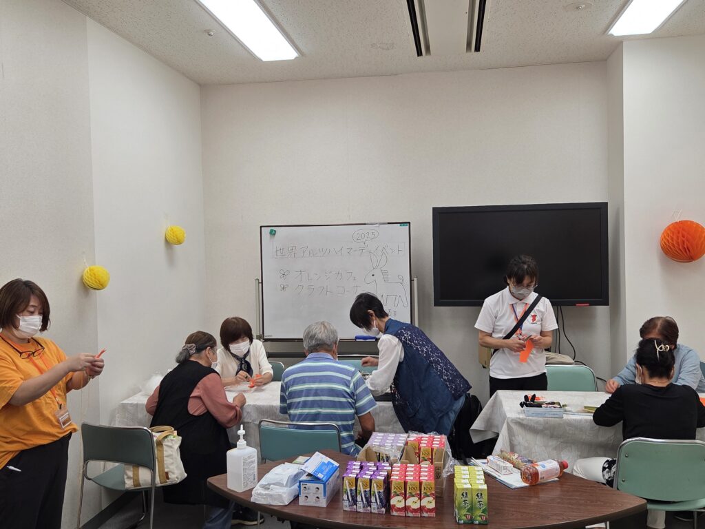 市職員と地域包括支援センター職員は、オレンジカフェとクラフトコーナー、相談コーナーを担当。