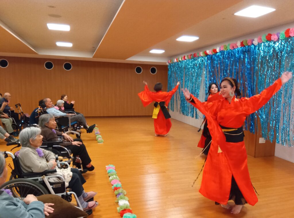 華やかな衣装とリズミカルな音楽に、会場は笑顔と拍手に包まれ、利用者様も喜ばれていました。