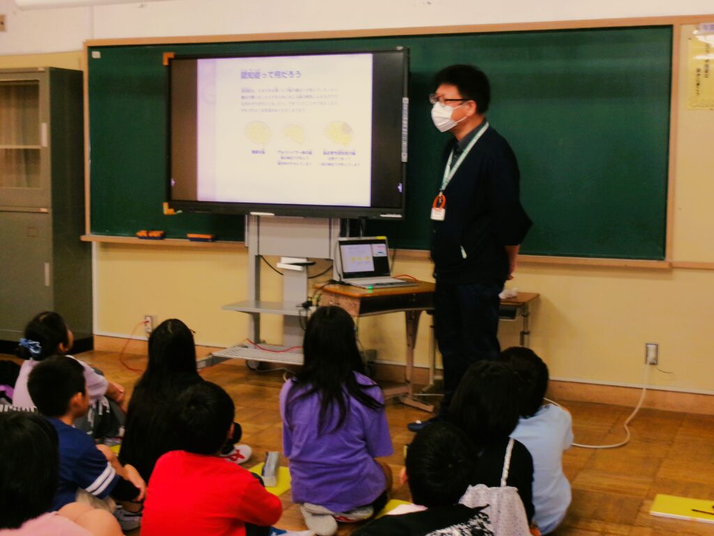 三山小学校にて、認知症サポーター養成講座を実施しました。最近は親子3世代で住んでいる家族はとても少なくなり、日頃からお年寄りと接する子供が少ないため、認知症と聞いてもあまりピンとこない子たちが多かった印象です。しかし、認知症という病気を知ることで、地域でも高齢者が安心して長く暮らせる地域づくりを、子供たちとも一緒に取り組めると良いですね。