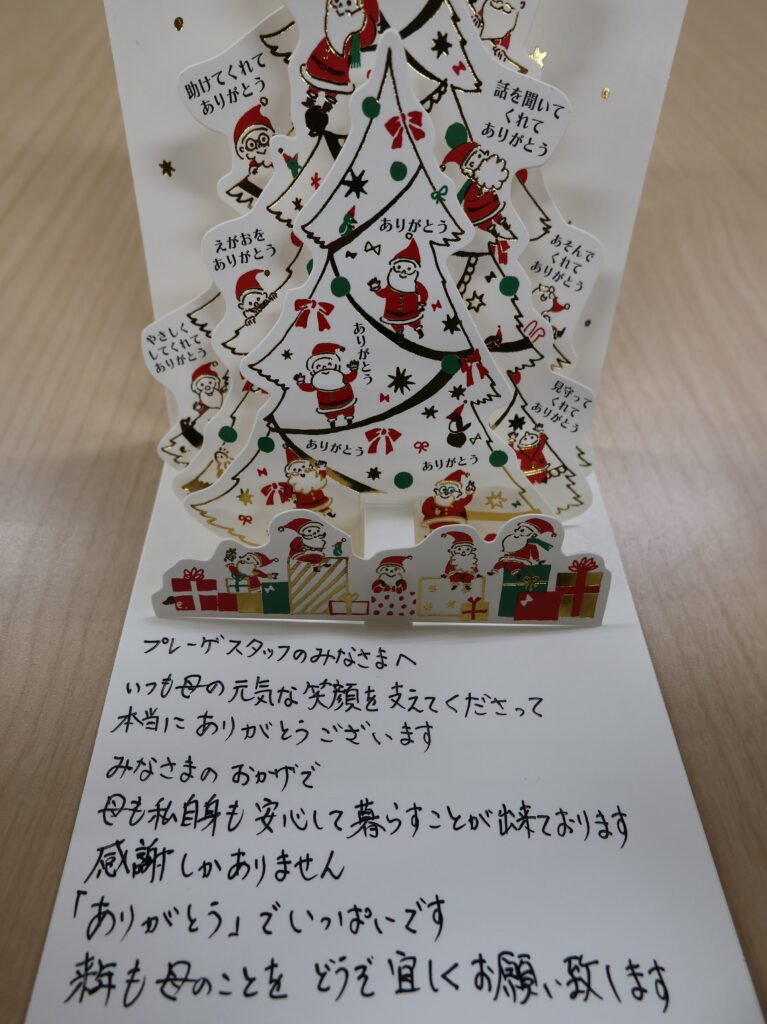 先日、利用者様のご家族より、心温まるお言葉を頂戴しました。